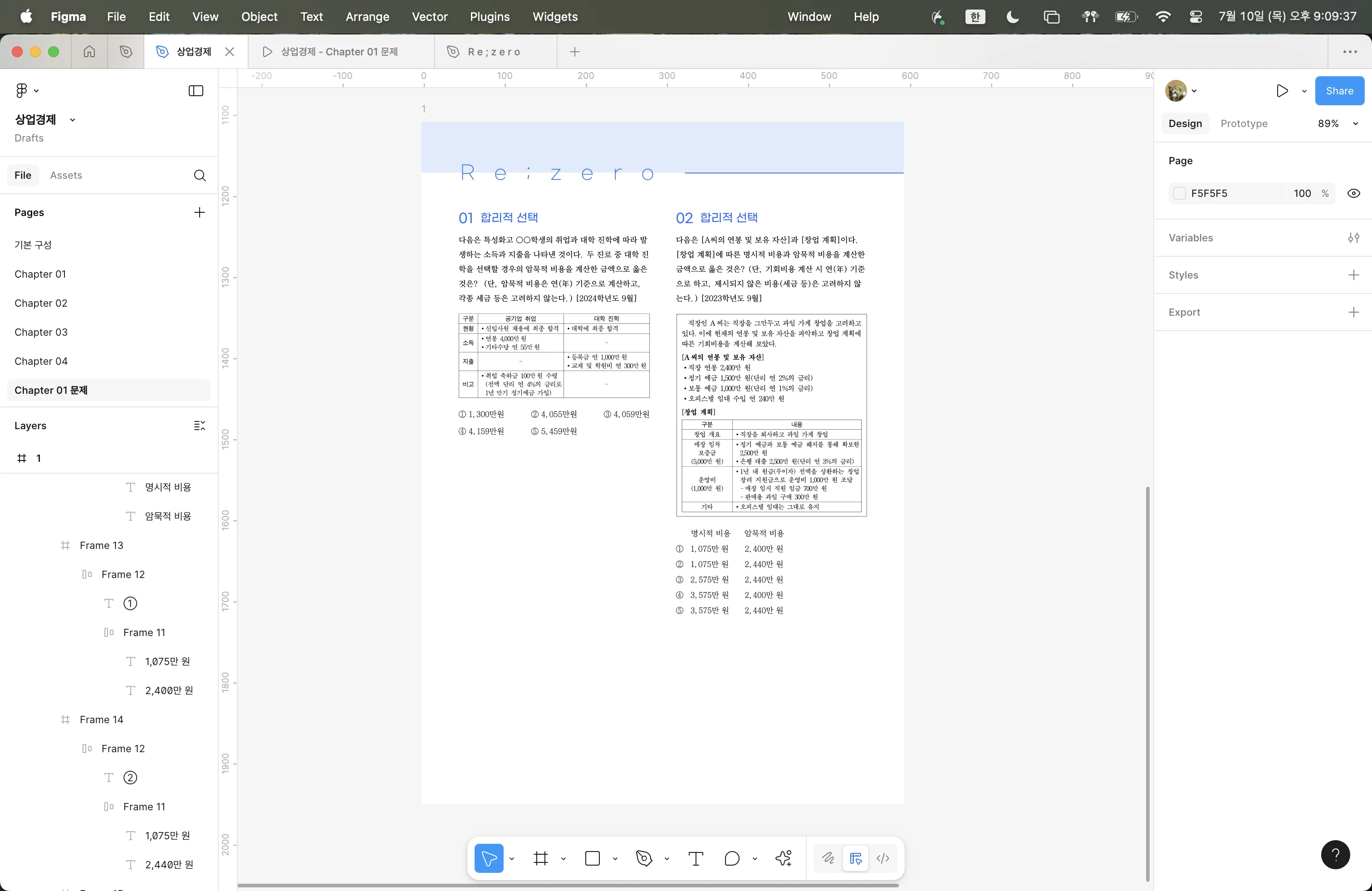 위의 두 교재의 디자인을 차용하여 피그마로 컴포넌트들을 제작하였다.